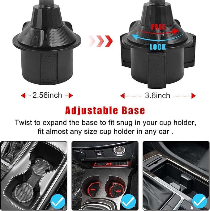 Suitable SizeRotate to expand the base to fit snug in your cup holder, its diameter is about 6-9.4cm/2.4-3.7inch. Fits most round car cup holders such as boats, SUVs, trucks, RVs and golf carts.