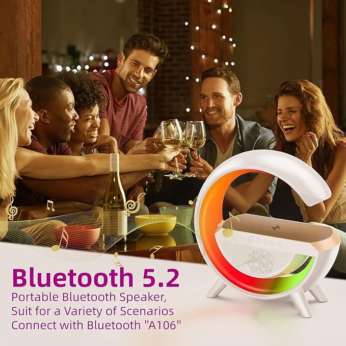 - Smart Wireless Charging Table Lamp – 3-in-1 G-Shape LED Night Light, 15W Fast Charger & Bluetooth Speaker.