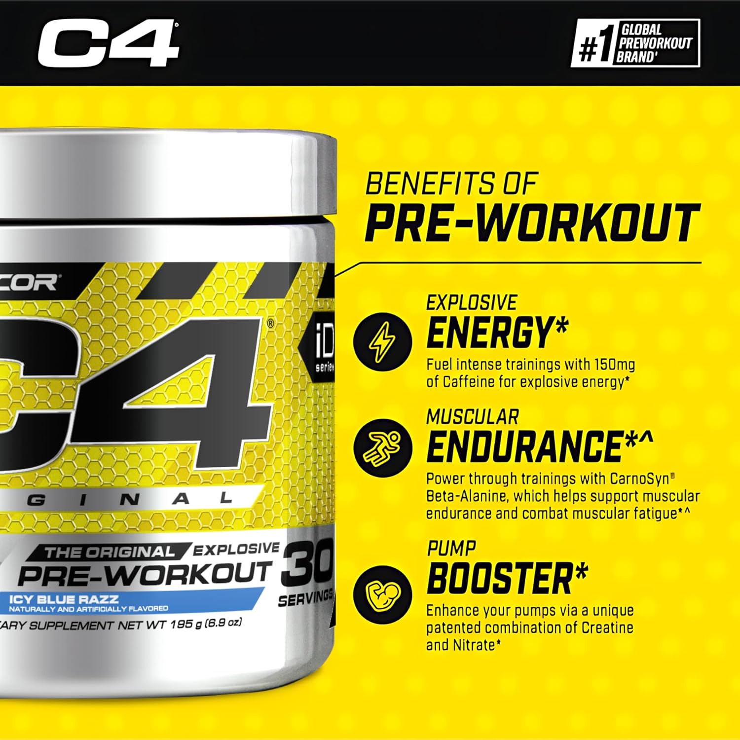 - CELLUCOR C4 ORIGINAL THE ORIGINAL EXPLOSIVE PRE-WORKOUT ICY BLUE RAZZ 30 SERVINGS
