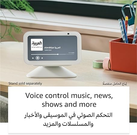 تستخدم مساعد أليكسا الذكي لتتمكن من الاطلاع على الأخبار وحالة الطقس بنظرة سريعة، وتشغيل الموسيقى، وتلاوة القرآن الكريم، وضبط المؤقتات والمنبهات، وجعل منزلك أكثر ذكاءً مع الأجهزة المتوافقة ابدأ يومك بهدوء مع روتين أليكسا الذي يضبط المنبهات، ويوقظك على موسيقاك المفضلة، ويشغل الأضواء المتوافقة الآن مع صوت جهير أعمق وأصوات أكثر وضوحًا. تتضمن شاشة 5.5 بوصة لتتمكن من عرض البرامج وعناوين الأغاني وغيرها بنظرة سريعة شاهد ما يدور حولك في المنزل من خلال تفاعلات الفيديو الصوتية دون استخدام اليدين.