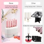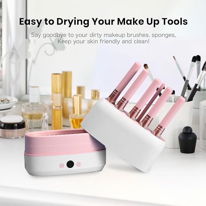 - This automatic electric makeup tool dryer efficiently dries up to 12 makeup brushes and two sponges simultaneously, saving you valuable time and effort. Its multi-functional design also accommodates razors and jewelry, making it a versatile addition to your beauty routine. The compact size ensures it won’t clutter your vanity.