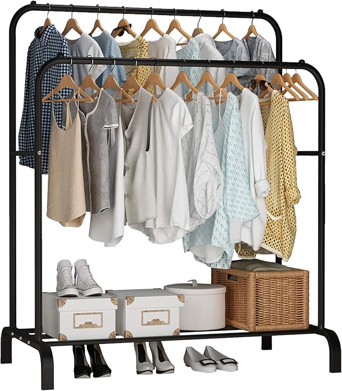 - STURDY METAL STRUCTURE – Characterized by a solid metal structure, the cloth rack shows perfect performance in sturdiness as well as load-bearing capacity. Meanwhile, its rounded tube causes no harm to your cloth.
