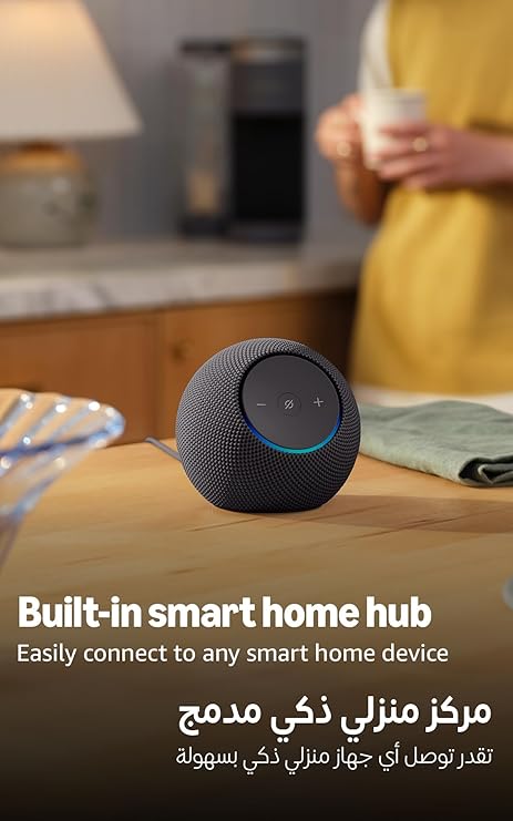 جهاز جديد كليًا ضمن مجموعتنا، يرتقي بتجربة الصوت في Echo Dot إلى أقصى حد، ليمنحك صوتًا غنيًا يملأ الغرفة ويتكيف تلقائيًا مع مساحتك يتناسب Echo Dot Max بشكل مثالي مع أي مكان، ليمنحك تجربة صوتية شخصية مع صوت جهير عميق ووضوح مُحسّن أنجز المزيد مع خاصية إقران الأجهزة. وصّل أجهزة Echo المتوافقة في غرف مختلفة، أو أقرّن جهاز Echo Dot Max آخر للاستمتاع بصوت أكثر ثراءً. تحكّم بسيط في منزلك الذكي. اضبط إجراءات روتينية، وأقرن وتحكّم في الإضاءة والأقفال وآلاف الأجهزة التي تعمل مع Alexa دون الحاجة إلى وحدة تحكم منزلية ذكية منفصلة. مع تقنية Omnisense، يمكنك تفعيل الإجراءات الروتينية عبر استشعار درجة الحرارة أو وجودك نجز مهامك بسهولة مع Alexa. من تحديثات الطقس إلى التذكيرات، أليكسا لديها الإجابات.