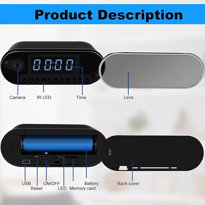 - Motion Detection with Alarm – Our clock camera can intelligently detect movement and data immediately when someone walks into your house or office, without worrying about losing important evidence. Alert notifications are sent instantly to your mobile app, so you never miss an important moment.